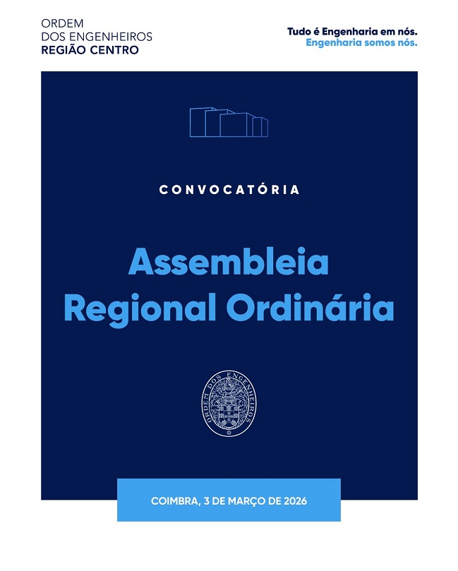 De acordo com o estabelecido na alínea b) do nº 2 do Artigo 47º do Estatuto convoco a Assembleia Regional Ordinária da Região Centro da Ordem dos Engenheiros para o dia 3 de março de 2026, às 18:00 horas, com a seguinte Ordem de Trabalhos: